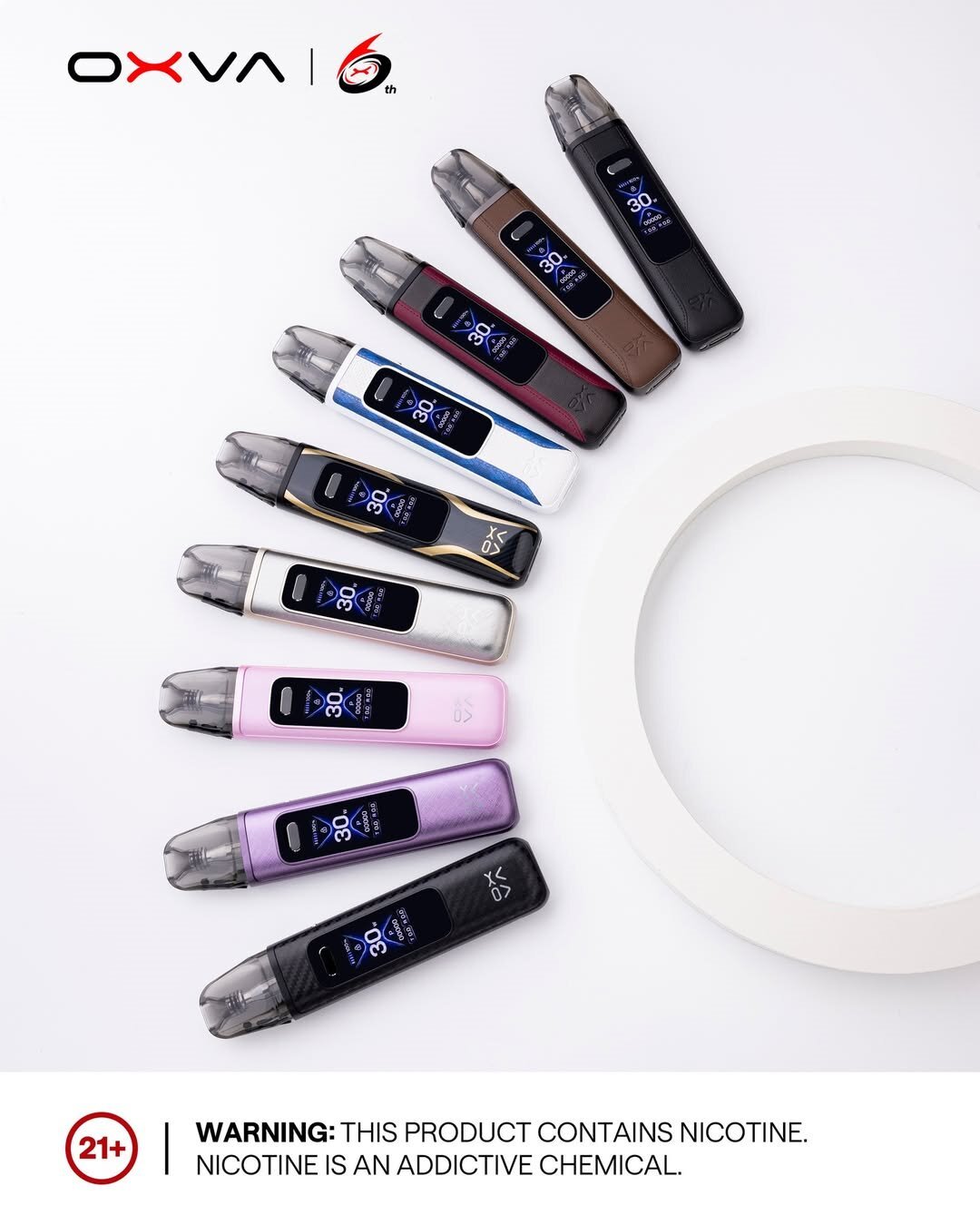 OXVA XLIM Pro 3 結合了纖薄外型與強勁性能,內建 1500mAh 大容量電池,並配備 1.05 吋全彩顯示螢幕,清楚呈現輸出功率與狀態。